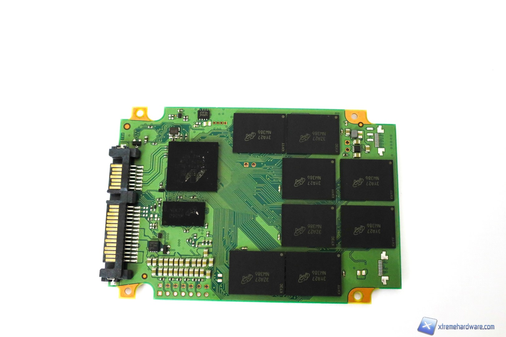 Soffermandoci sui chip di memoria, troviamo 8 chip Toggle NAND 2.0 di tipo MLC con riportato il logo Micron e il codice in questo caso NW386. Si tratta di chip di memoria MLC realizzati con processo produttivo a 20nm la cui sigla completa è Micron MT29F256G08CECAB. Quindi abbiamo 8 chip NAND con una capacità di 32GB per ciascun chip per un totale di 256GB. Tali chip sono ovviamente prodotti da Micron ed impiegati in moltissimi SSD tra cui gli stessi Crucial/Micron. Il TBW per questo SSD è di 72TB, un valore buono che non ci farà temere l'usura delle celle anche con utilizzi frequenti del disco.